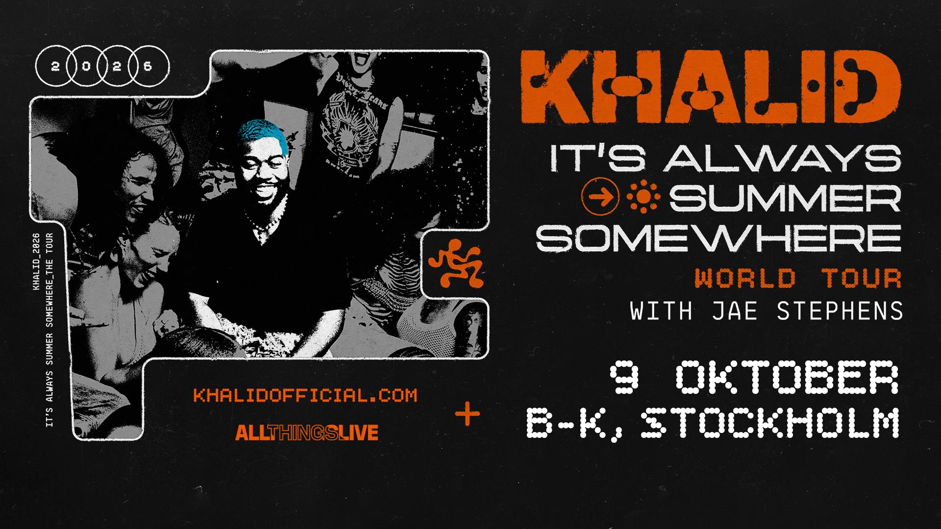 KHALID MULTI-PLATINASÄLJANDE GLOBAL SUPERSTJÄRNA ÅTERVÄNDER TILL EUROPA MED IT’S ALWAYS SUMMER SOMEWHERE TOUR I OKTOBER 2026